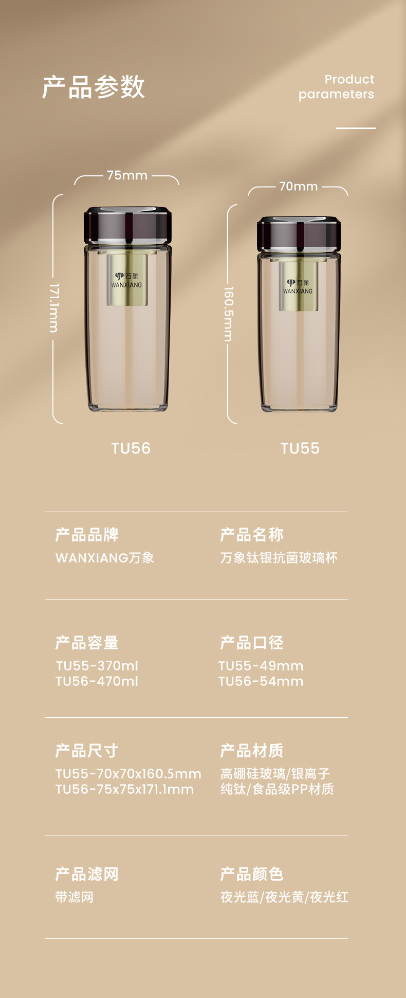萬象鈦銀抗菌單層玻璃杯 型號TU55-¥415 型號TU56-¥455