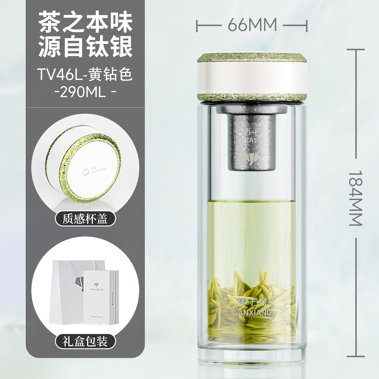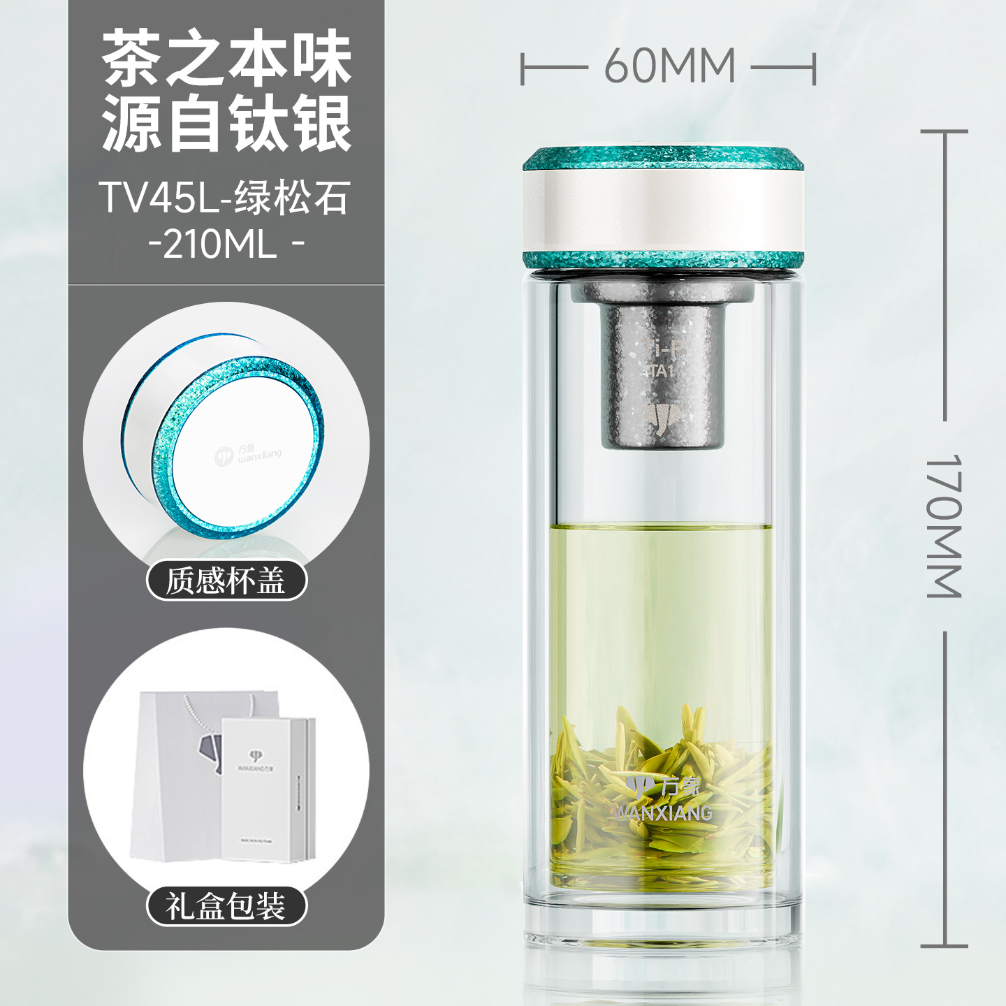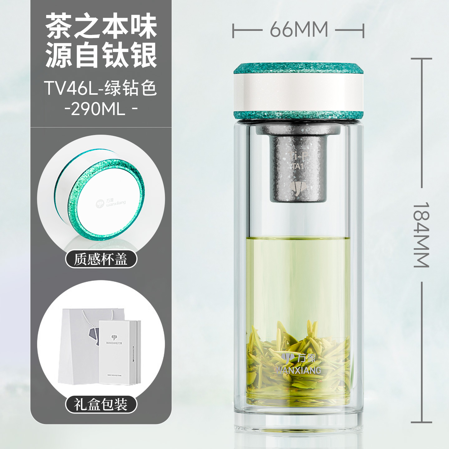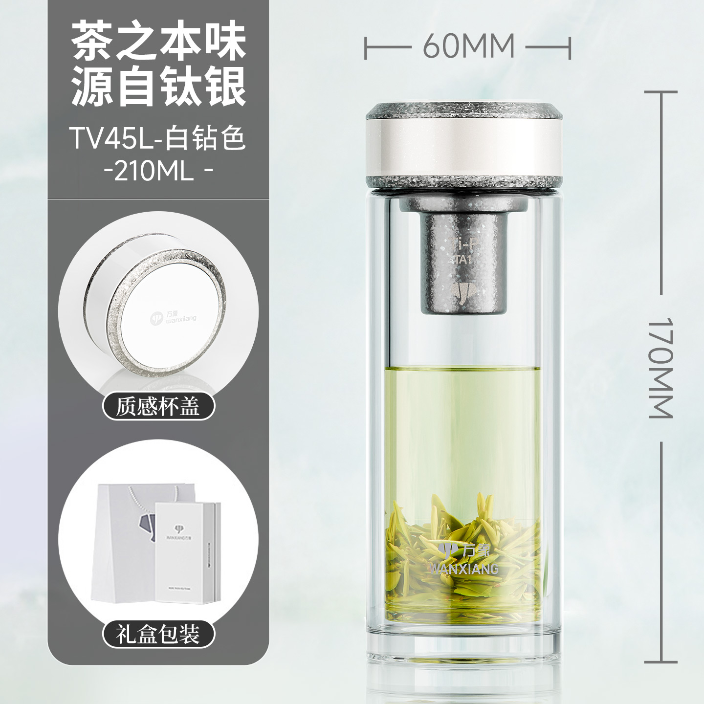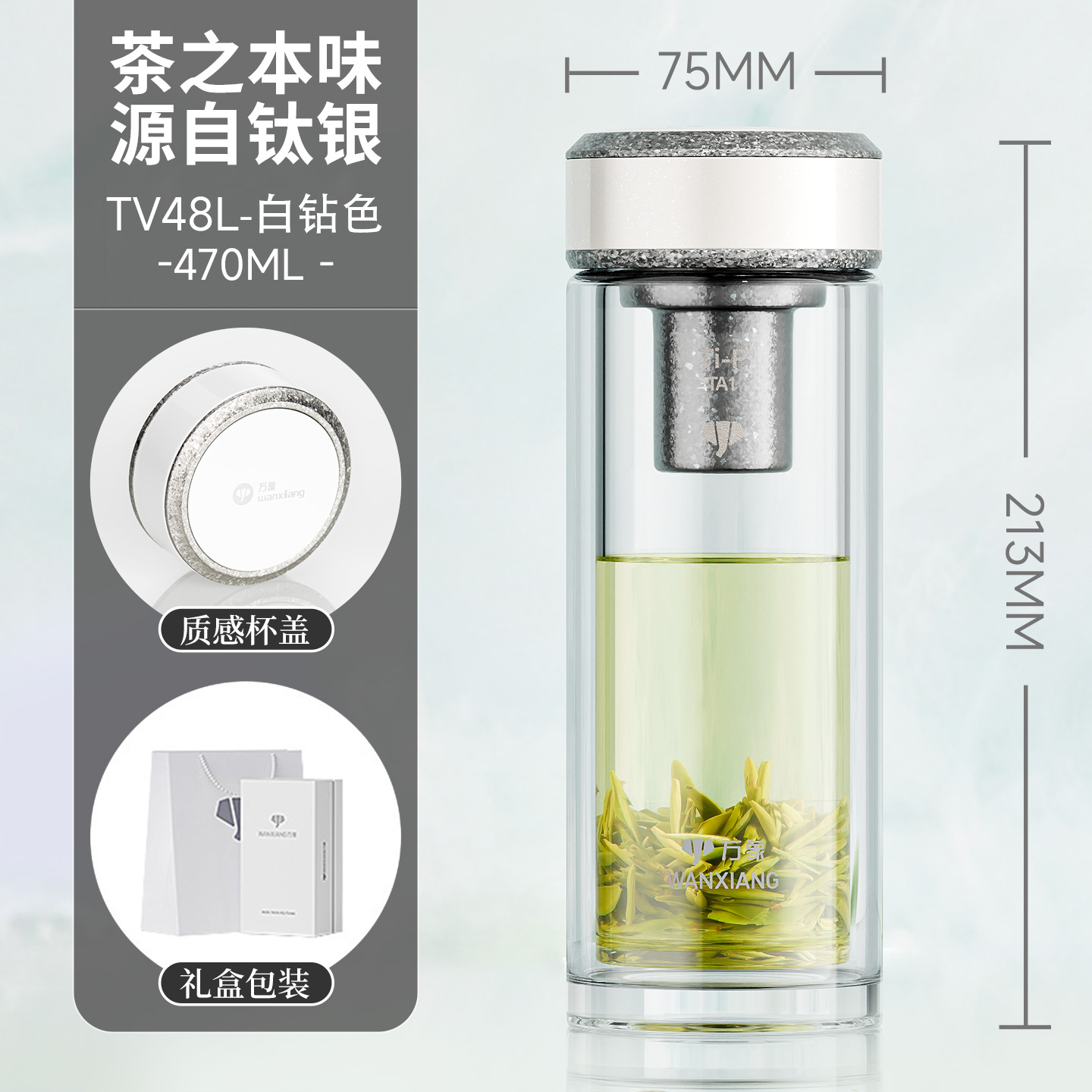 萬象鈦銀抗菌雙層玻璃杯 型號TV45L-¥638 型號TV46L-¥675 型號TV47L-¥713 型號TV48L-¥750