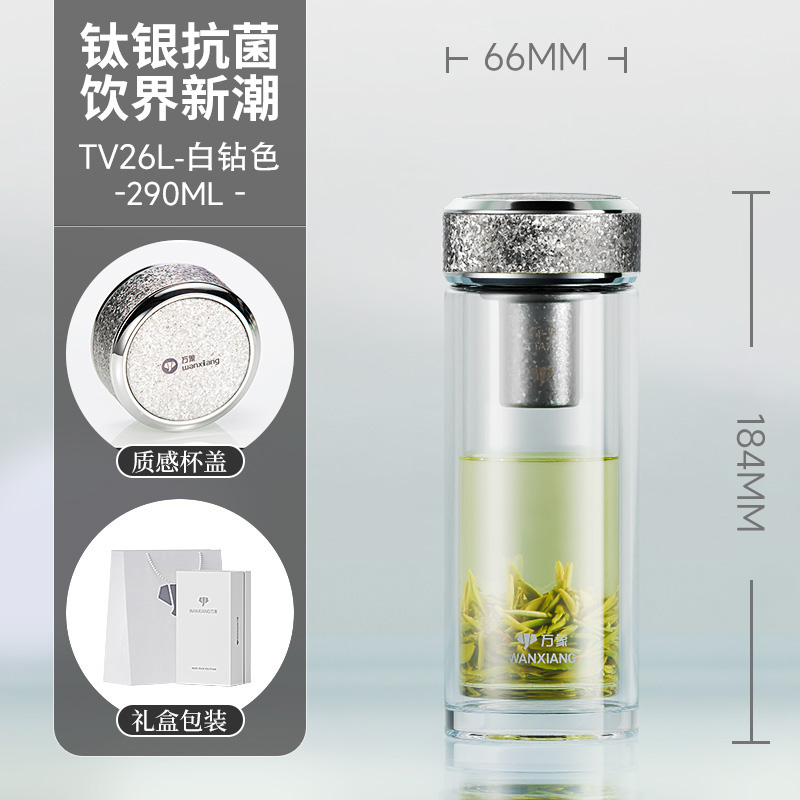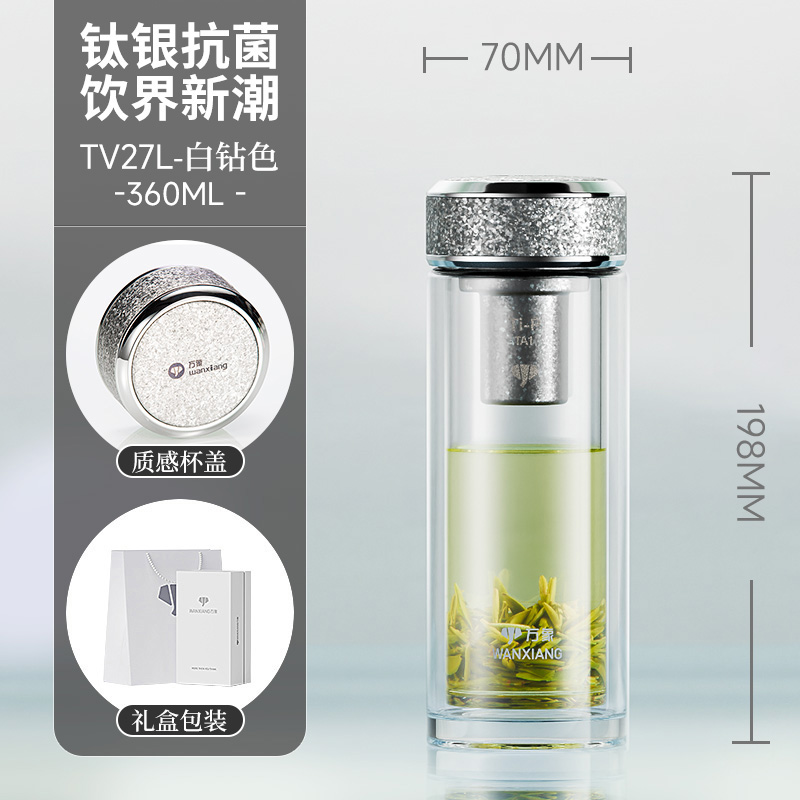 萬象鈦銀抗菌雙層玻璃杯 型號TV25L-¥688 型號TV26L-¥725 型號TV27L-¥763 型號TV28L-¥800